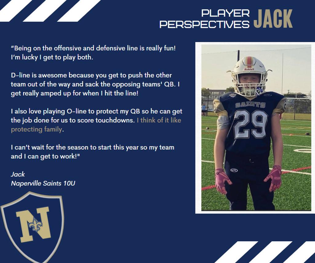 As a member of the Bill George Youth Football League, our Naperville Saints football players have a unique opportunity to flourish as offense and defensive lineman. In our program, players GET the opportunity to be a lineman. Read more below!
